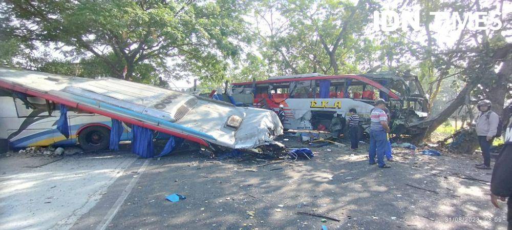 Ngawi, IDN Times - Simpang siur mengenai jumlah korban tewas pada tabrakan maut antara Bus Eka dengan Bus Sugeng Rahayu di Jalan Raya Ngawi - Magetan diungkap Kasat Lantas Polres Ngawi AKP Achmad Fahmi Adhiatma, Jumat (1/9/2023).