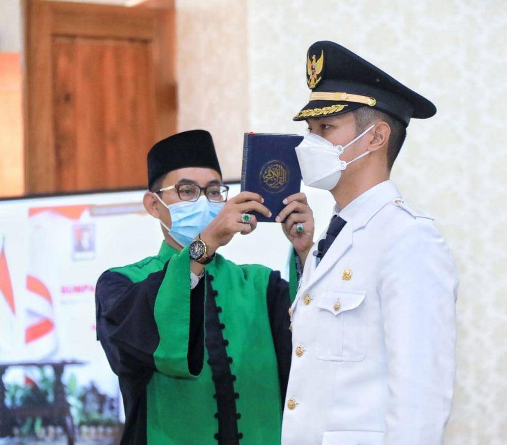 Surabaya, IDN Times - Tak seperti kepala daerah lainnya, Bupati Tuban, Aditya Halindra Faridzki tidak didampingi wakilnya, Riyadi, saat pelantikan di Gedung Negara Grahadi, Surabaya, Minggu (20/6/2021). Riyadi hanya mengikuti momen spesialnya dilantik sebagai orang nomor dua di lingkungan Pemkab Tuban via online alias daring.