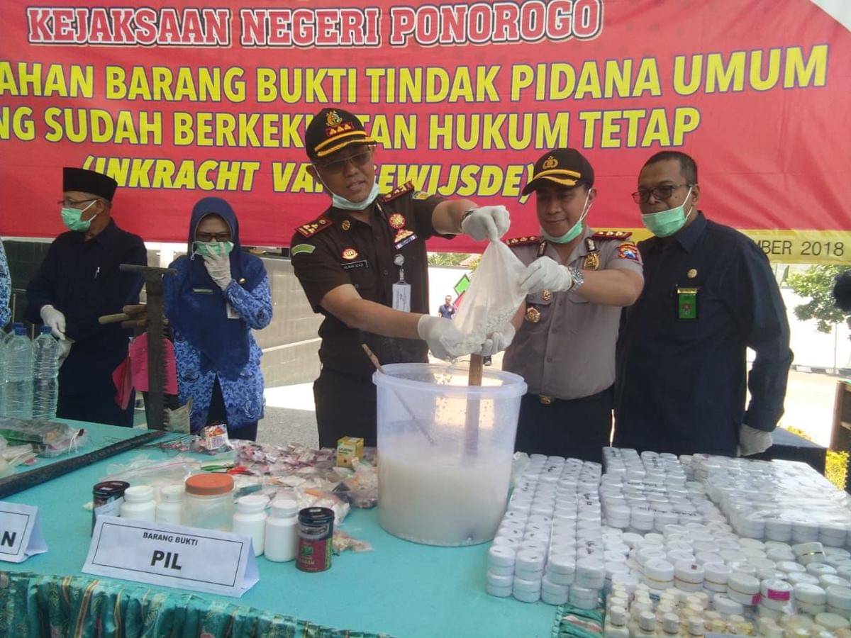Pemusnahan barang bukti merupakan kegiatan rutin yang dilakukan Kejari Ponorogo setiap tahun. Salah satu tujuannya agar barang tersebut tidak disalahgunakan oleh pihak yang tidak bertanggungjawab. Apalagi, kasus dengan barang bukti itu sudah mempunyai kekuatan hukum tetap dari Pengadilan Negeri Ponorogo.