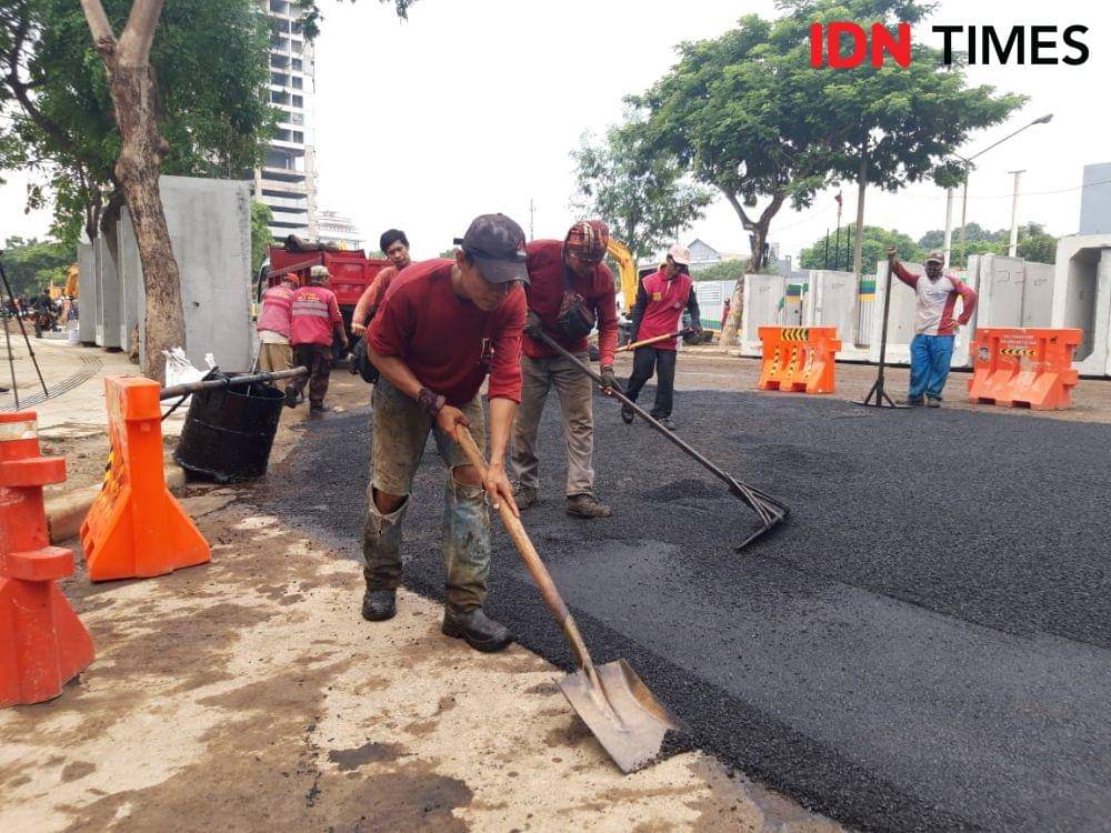 Surabaya, IDN Times - Proses finalisasi pemulihan Jalan Raya Gubeng yang ambles ditargetkan selesai hari ini, Rabu (26/12). Terpantau tahap akhir pemulihan jalan pun telah dimulai. Bahkan Wali Kota Surabaya Tri Rismaharini menginginkan jalan tersebut dapat beroperasi sore ini.